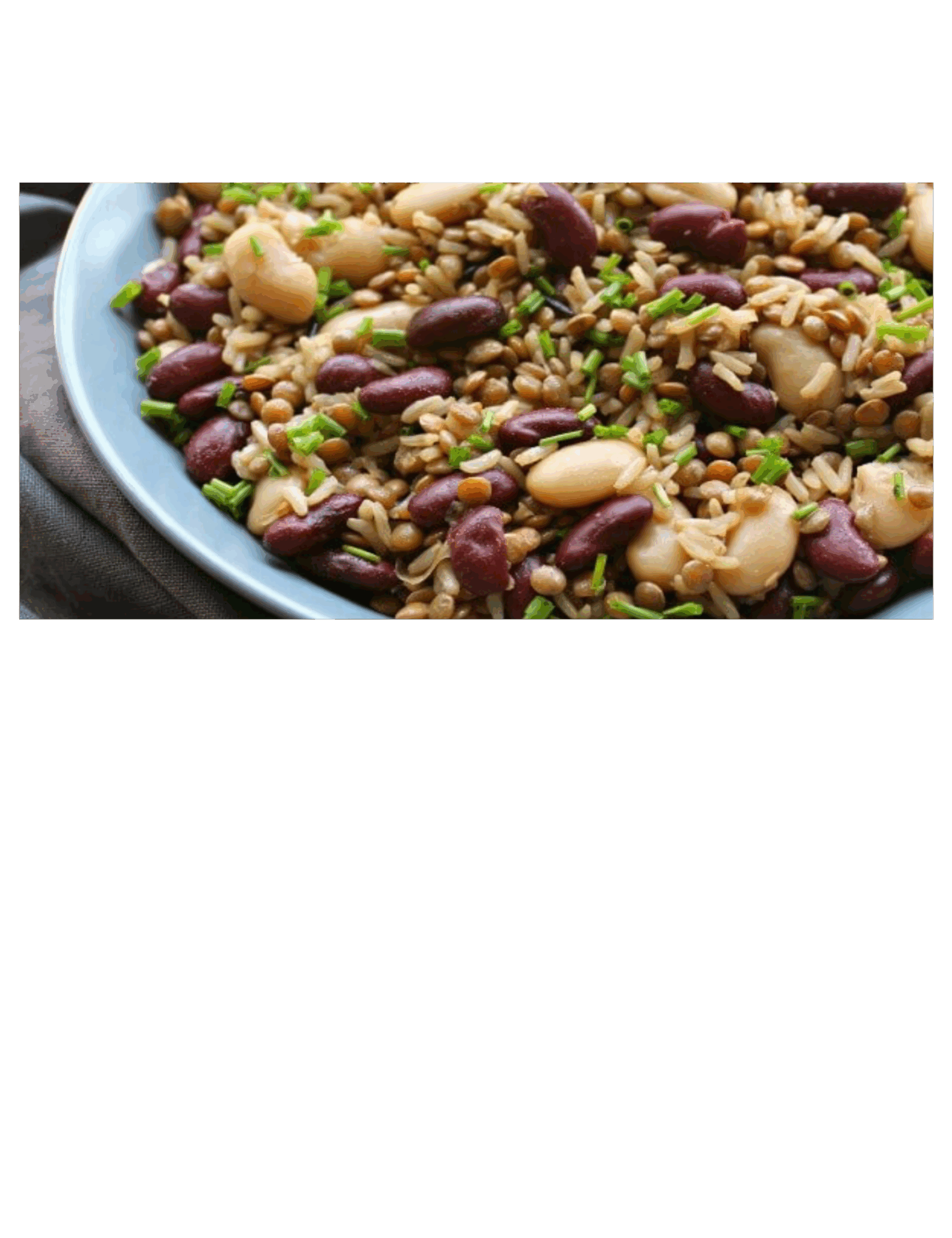 Once the rice and lentils have cooled to warm up, pour them into a salad bowl, add the beans and the chives, and mix gently.